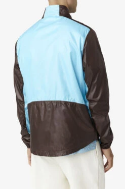 This windbreaker features a retro-inspired outdoors design with a bold two-color block, full-zip front and logo patches on the sleeve in a 100% nylon construction.